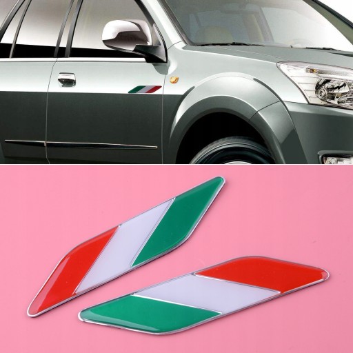 2pcs Car Side Fender Alloy Italy Flag Style Logo Emblem Badge Stickers Decal