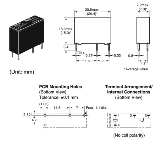 24V; 5A; 200mW; 1 st. zwierny; 20,5 x 15,3 x 7,2mm montaż PCB
