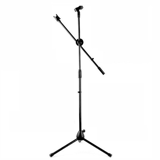 Statyw mikrofonowy w zestawie z dwoma uchwytami na mikrofon. Sprawdzi się zarówno w użytku domowym, jak i w studiu nagraniowym.