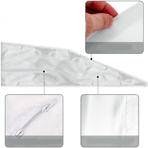 Krok 3: Podłączenie Rozsuń zamek błyskawiczny i umieść wąż klimatyzatora w szczelinie zamka. Możesz wygodnie wyprowadzić jedną lub dwie rury jednocześnie. To wszystko! Nie potrzebujesz żadnych dodatkowych narzędzi ani specjalistycznej wiedzy. Teraz możesz cieszyć się z uszczelnionej instalacji klimatyzatora bez żadnych kłopotów.