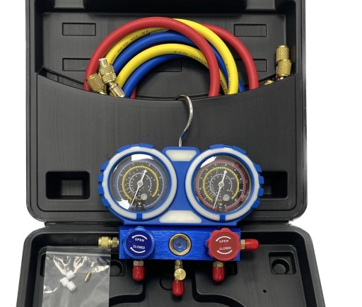 Zestaw manometrów R32 R410A R134A z wężami i walizką