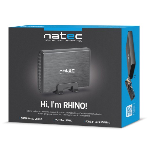 - Informacje dodatkowe: Zewnętrzna obudowa z interfejsem USB 3.0 na dysk twardy 3.5 cala ze ,złączem SATA. Natec Rhino to elegancka obudowa wykonana ze szczotkowanego ,aluminium kompatybilna z większością dysków 3.5 cala SATA.,Dzięki aluminiowej konstrukcji urządzenie posiada do