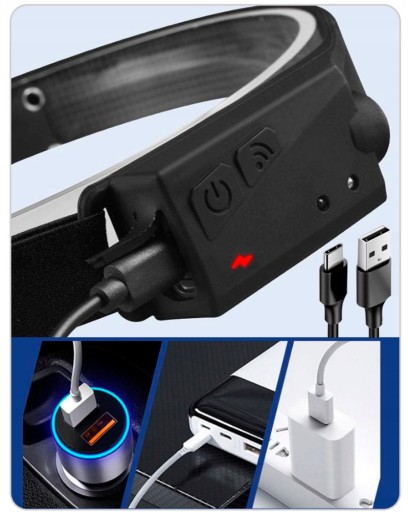 Latarka czołowa LED COB z czujnikiem ruchu.