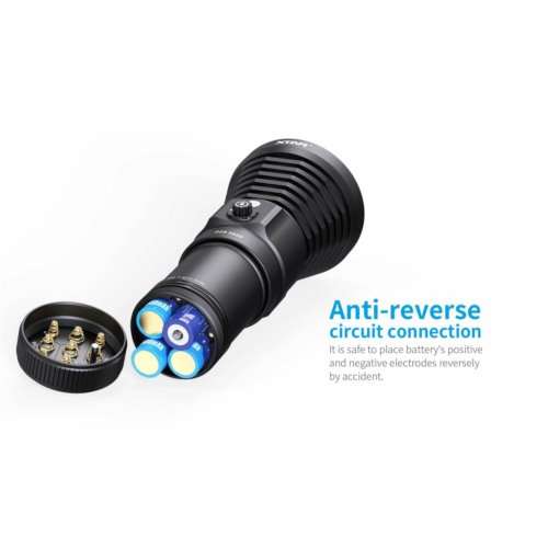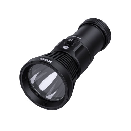 XTAR D28 3600 to profesjonalna latarka podwodna, do nurkowania w jaskiniach i wrakach. Generuje światło o kącie skupienia wiązki 8° i zapewnia maksymalny zasięg do 550 metrów, za co odpowiada dioda CREE XHP70.2 P4 o mocy 3600 lumenów. Dzięki wysokiemu wskaźnikowi oddawania barw, można uzyskać niezwykłe kolory w podwodnych zdjęciach i filmach. Doskonała funkcja uszczelniania zapewnia głębokość nurkowania do 100 metrów. Do dyspozycji mamy wybór kilku trybów pracy: Turbo, Wysoki, Średni oraz Niski. Wbudowany wskaźnik zasilania, informuje na bieżąco o stanie naładowania akumulatora. Włącznik taktyczny z funkcją przełączania trybów pracy, posiada dodatkowo blokadę przed przypadkowym włączeniem. Latarka D28 zasilana jest z dołączonych akumulatorów litowo-jonowych 18650, które ładuje się za pomocą, również dołączonej ładowarki MC4S XTAR. Aby zapewnić dobry kontakt elektryczny, styki akumulatora wykonane są z materiałów przeciwutleniających i dodatkowo pozłacane. W pełni naładowane ogniwa, pozwalają na 150 minut czasu pracy i to w najmocniejszym trybie 3600 lumenów. Korzystanie z latarki ułatwia przykręcany uchwyt (opcjonalnie), co zapewnia większą wygodę podczas podwodnej podróży. Cały zestaw zapakowany jest w estetyczną i poręczną walizkę, idealnie nadającą się na prezent.