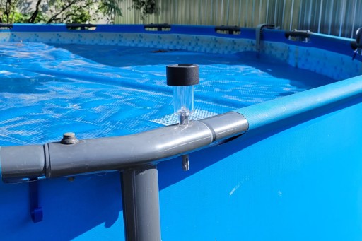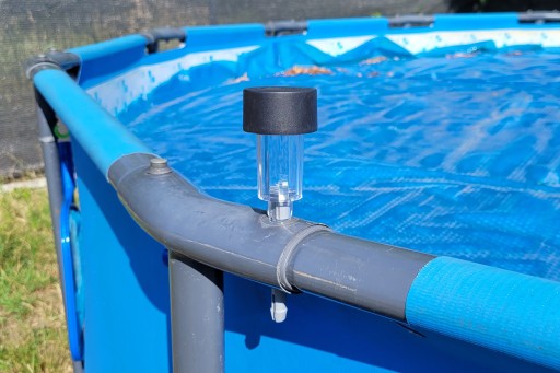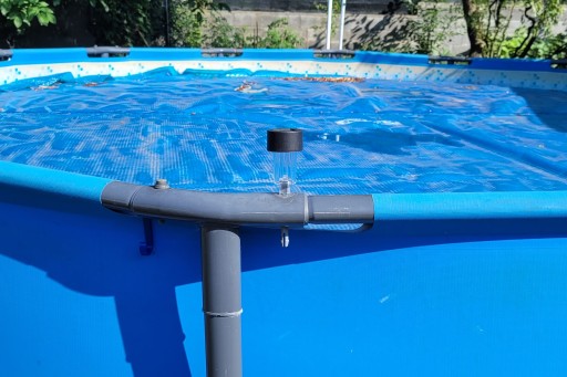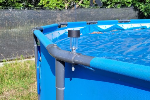 Solarna lampka LED przystosowana do montażu na basenach stelażowych w miejscu trzpienia łączeniowego elementy stelaża.