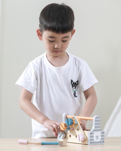 - Poręczna skrzynka z narzędziami zadowoli każdego małego majsterkowicza, który pomaga tacie i dziadkowi w pracach domowych.