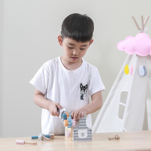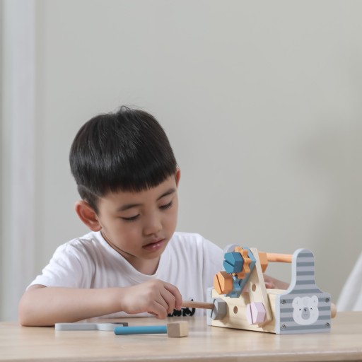 Zestaw drewnianych narzędzi marki Viga z serii Polar Bear – Zestaw narzędzi z motywem niedźwiedzia polarnego z pewnością przypadnie do gustu małym rzemieślnikom.