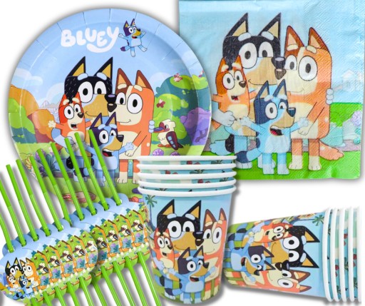 W ofercie posiadamy także inne produkty z serii Bluey: maskotki, balony, toppery, girlandy, kubki, talerze, serwetki czy zestawy naklejek.
