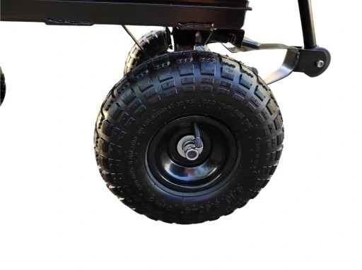 Wózek ogrodowy Frontier to przede wszystkim praktyczność dzięki funkcji wywrotki oraz możliwości zamiany w przyczepkę do traktorka. Wyposażony jest we wszystko, czego potrzebujesz - między innymi ergonomiczną, wyściełaną rączkę oraz duże opony pneumatyczne, oferujące stabilność i swobodę ruchu na różnych typach podłoża.