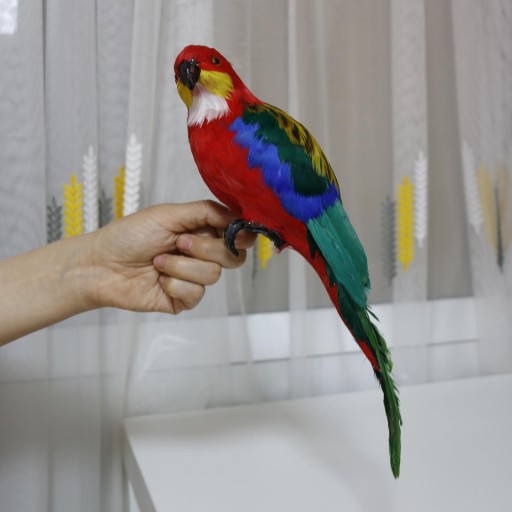 Symulacyjne ozdoby papugi: osadzone trójwymiarowe oczy, pulchne pióra, delikatny kolor, realistyczny kształt i świetna faktura.