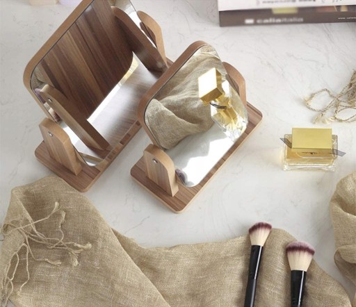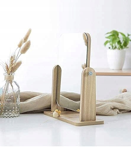 Lusterko kosmetyczne stojące drewniane prostokątne L7BR