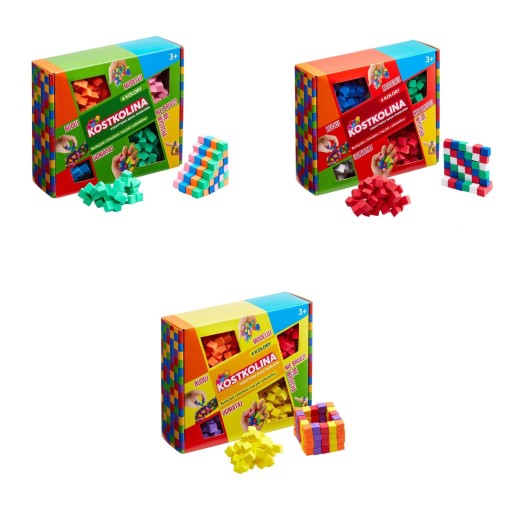 Pojedyncze kosteczki można łączyć w dowolne kształty. Można formować konstrukcje jak z klocków lub ugniatać i lepić jak z plasteliny. Kostkolina nigdy nie wysycha.