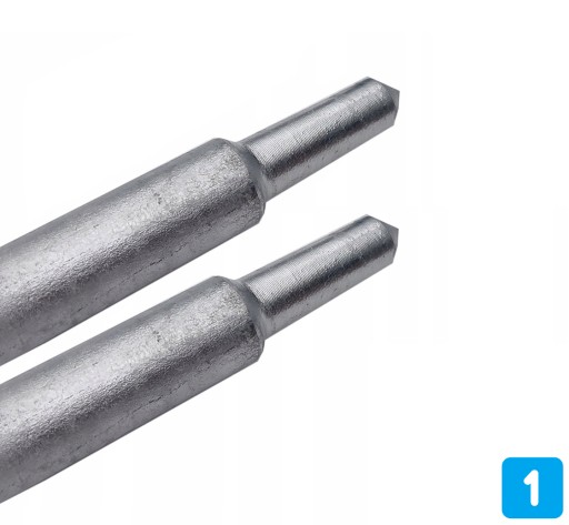 - Odpowiednio wyprofilowana końcówka (stożek)/ Zaostrzony koniec pozwala pogrążać uziom bez używania dodatkowego grotu, a drugi koniec z otworem, zapewnia szybkie montowanie kolejnego pręta, bez używania dodatkowej złączki.