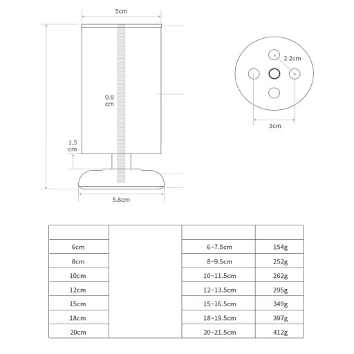 Zaprojektowany z odporną na zarysowania gumą pod spodem, zmień styl lub wysokość mebli za pomocą nowych nóg