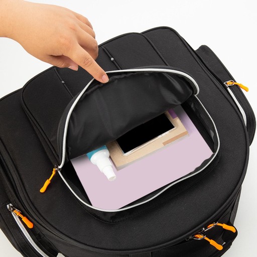 It can store drum pads, drum sticks, small music stand, keys, brackets, score etc.