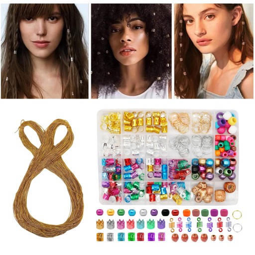 238 szt. Dreadlock warkocz mankiety koraliki pierścionki dekoracja włosów pakiet OPP + sznurek