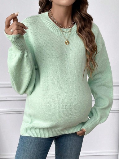 GŁADKI KLASYCZNY MIĘTOWY SWETER Z DŁUGIM RĘKAWEM LUŹNY SHEIN 40/42