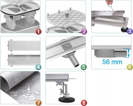 - możliwość dopasowania rozmiaru odpływu do rozmiaru płytki