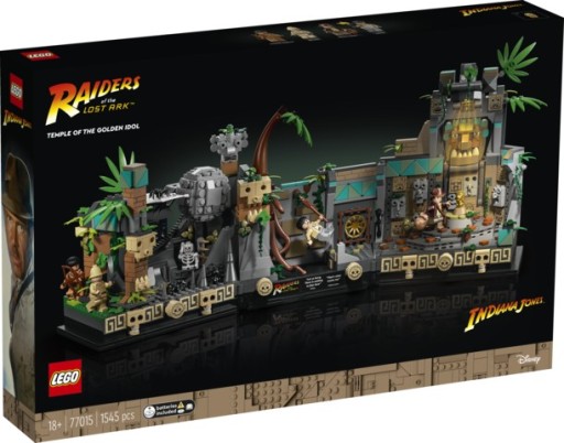 • Projekt dla dorosłych — złóż hołd Indianie Jonesowi™, budując ten bardzo szczegółowy model LEGO® Świątynia złotego posążka (77015)• Przywołaj filmowe wspomnienia — model został oparty na kultowej scenie otwierającej pierwszy film z Indianą Jonesem™, „Poszukiwacze zaginionej Arki”• Mnóstwo interaktywnych funkcji — przekręć cztery pokrętła na cokole modelu, aby oświetlić posążek, zawalić ścianę i zobaczyć, jak Indiana Jones™ ucieka przez jaskinię, gdy goni go ogromny głaz• Cztery minifigurki — zestaw zawiera cztery postacie z filmu: Indianę Jonesa z jego słynnym kapeluszem i biczem, Satipo, Belloqa i wojownika Hovitos• Prezent dla fanów Indiany Jonesa™ — ten model sceny filmowej z interaktywnymi funkcjami to satysfakcjonujący projekt dla dorosłych, którzy dorastali, oglądając filmy o Indianie Jonesie• Model do ustawienia na półce — ten mierzący 21 cm wysokości, 51 cm szerokości i 19 cm głębokości model będzie świetną ozdobą w pokoju każdego fana filmów• Jeszcze więcej przygód — sprawdź też inne zestawy LEGO® Indiana Jones™: Pościg myśliwcem (77012) i Ucieczka z zaginionego grobowca (77013)• Emocjonujące przygody Indiany Jonesa™ — zestawy LEGO® Indiana Jones™ pozwalają rodzicom zagłębić się we wspomnieniach, a także wprowadzić dzieci w pełne akcji historie z pierwszych trzech filmów• Wysoka jakość — już od ponad sześciu dekad produkujemy klocki LEGO® tak, aby za każdym razem można je było łatwo rozdzielić• Testowane pod kątem bezpieczeństwa — klocki do budowania LEGO® spełniają najwyższe światowe standardy bezpieczeństwa