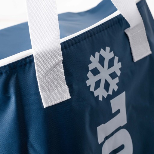 ❤️ Wygodne uszy pozwolą Ci przenieść ją w wybrane miejsce, a zamknięcie na zamek błyskawiczny zapobiegnie wypadaniu zawartości podczas transportu oraz pomoże utrzymać odpowiednią temperaturę wewnątrz. Granatowy kolor torby z białymi dodatkami prezentuje się modnie i nowocześnie.