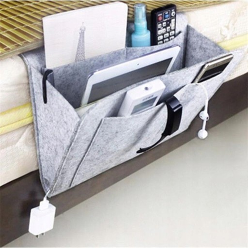 Przyłóżkowy organizer wykorzystujący filc z wyjątkowo mocnymi szwami. Jest mocniejszy, mocniejszy i wytrzymalszy. Może pomieścić cięższe rzeczy i nie odkształci się i nie spadnie.