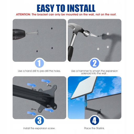 5. [Łatwa instalacja] Uchwyt ścienny do słupa Starlink można łatwo zainstalować w kilku prostych krokach. Nie są potrzebne żadne umiejętności zawodowe ani doświadczenie.