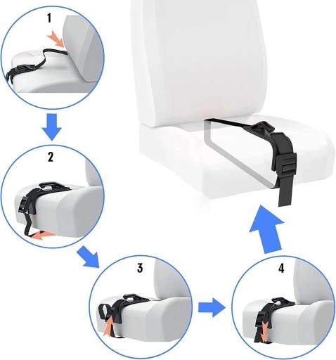 4. Dostosuj długość pasa tak, aby haczyk był umieszczony na brzegu fotela.