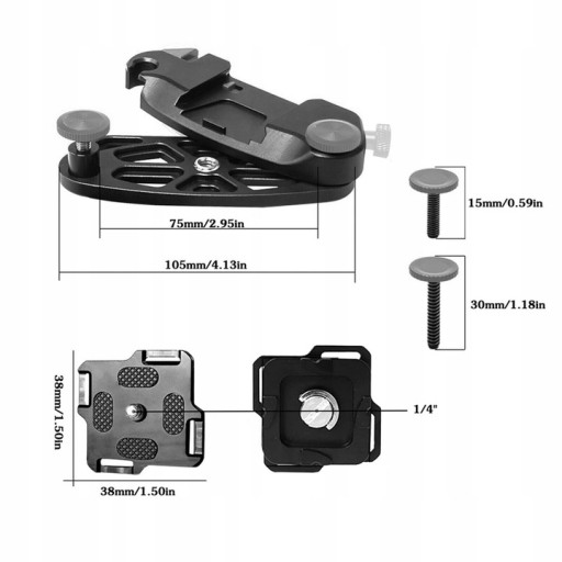 ⭕Specjalna konstrukcja gwarantuje pewne i stabilne zamocowanie kamer oraz aparatów na wszelkiego rodzaju paskach, szelkach, płaskich profilach.
