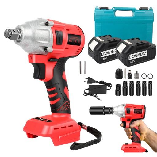 - Zestaw zawiera śrubę udarową z dwoma akumulatorami 5,5A, ładowarkę i opakowanie umożliwiające wygodne przechowywanie i transport.