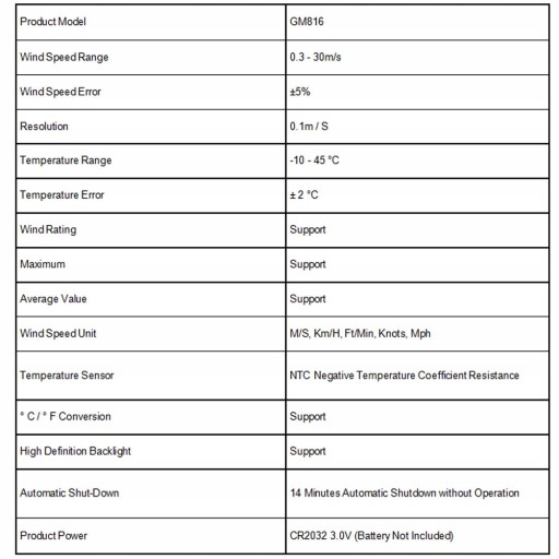 1 x miernik prędkości wiatru (bateria nie dołączona)