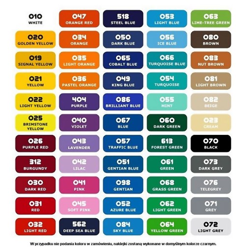 Wybierz kolor w jakim mają być wykonane naklejki.
