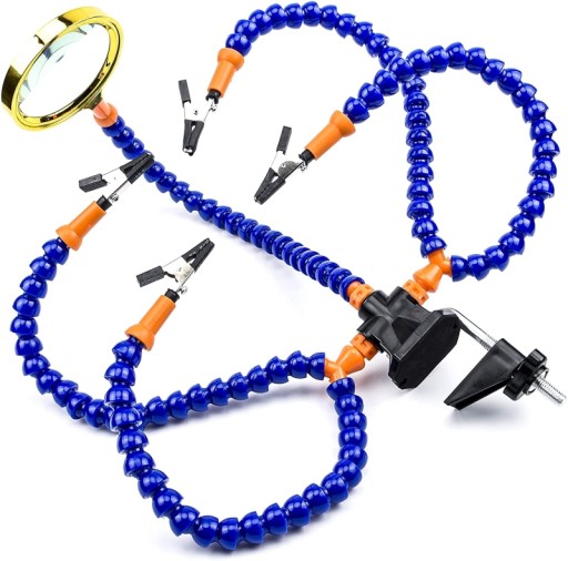 Tak zwana trzecia ręka to idealne narzędzie pomocnicze do lutowania. Cztery giętkie ramiona, w które wyposażono ten model, pozwalają wygodnie tworzyć skomplikowane projekty.
