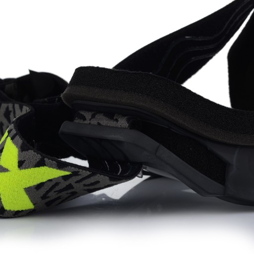 - Pasek z silikonowym nadrukiem od wewnątrz zapobiegający zsuwaniu się gogli z kasku
