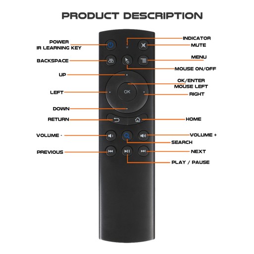 2. Wbudowana 6-osiowa mysz z czujnikiem żyroskopowym umożliwia korzystanie z tradycyjnych funkcji zdalnego sterowania, myszy i gier z wykrywaniem ruchu dla platformy Android.