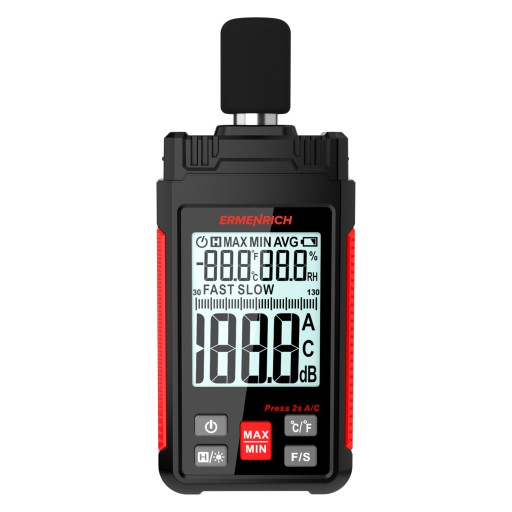 Ermenrich Seek DS20 to wielofunkcyjne urządzenie, które umożliwia pomiar poziomu dźwięku, wilgotności i temperatury zarówno w pomieszczeniach, jak i na zewnątrz. Może być używany do monitorowania warunków w pomieszczeniach mieszkalnych, biurowych lub przemysłowych i sprawdzenia ich zgodności z normami.