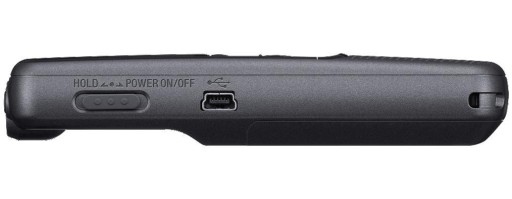 Dykafon Sony umożliwiający zapis dźwięku w formacie MP3 i odtwarzanie przez głośnik o mocy 300 mW. Tekst