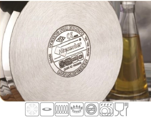 - Może być używany na wszystkich typach kuchenek: gazowej, ceramicznej, elektrycznej, halogenowej oraz indukcyjnej