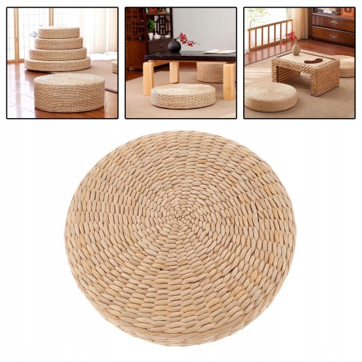 Okrągła Słomiana Tkana Poduszka Tatami Poduszka Podłogowa Medytacja Mata Siedziska 45x45cm