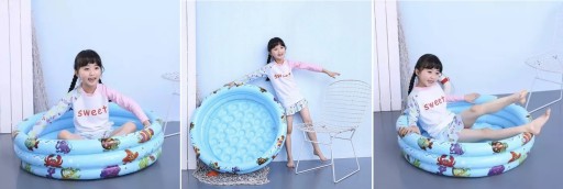 Basen składa się z trzech kolorowych pierścieni. Każdy z nich jest pompowany osobno. Dzięki temu, basenik jest stabilniejszy. Nie musimy nadmuchiwać wszystkich okręgów aby dziecko mogło wejść do środka i się pobawić.