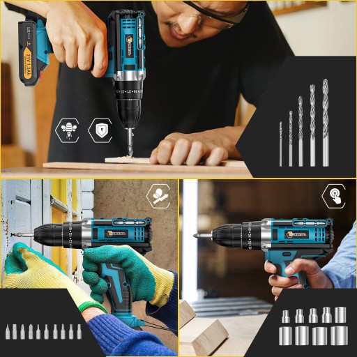 ⚙️-3 Funkcje: Wiertarkę udarową, wkrętarkę i wiertarkę płaską, aby sprostać różnym zadaniom.