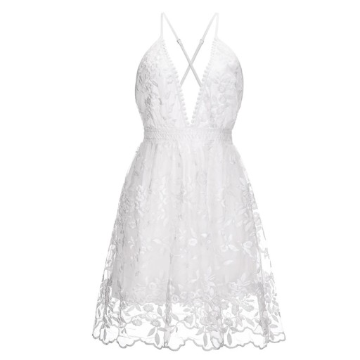 Легкое, воздушное белое кружевное платье на бретелях [M]