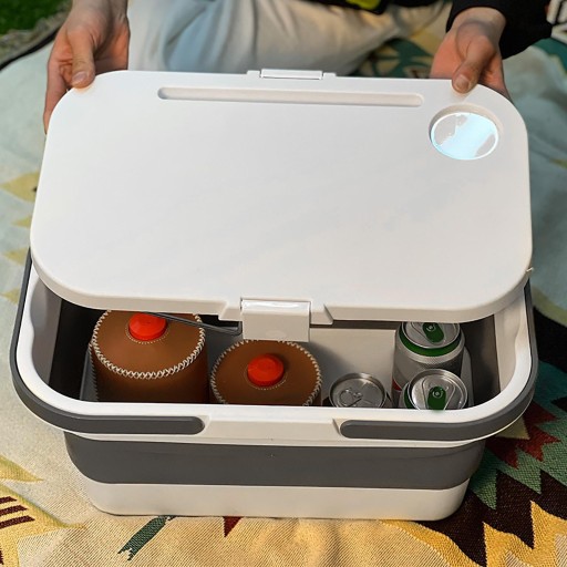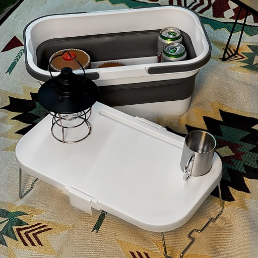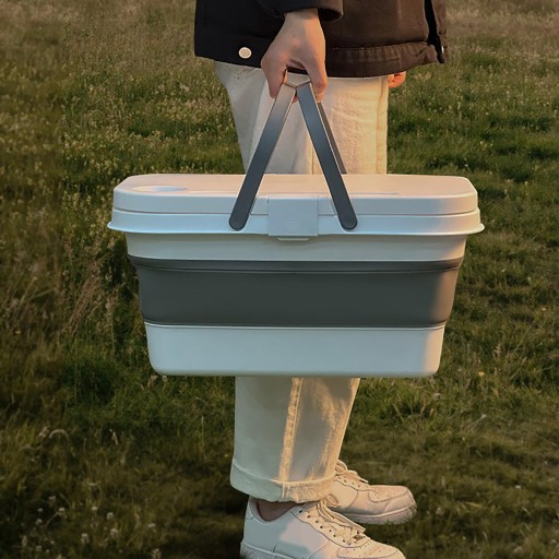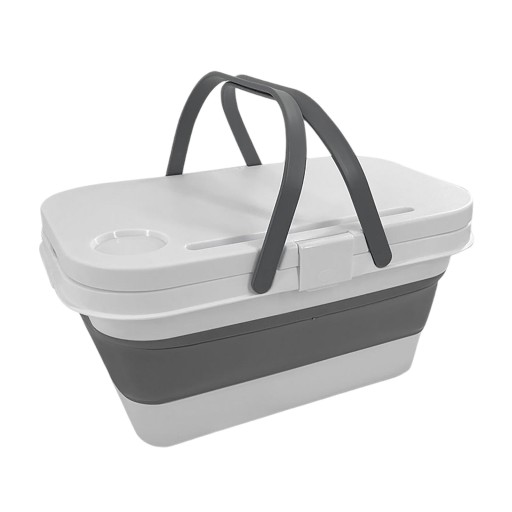 Collapsible Picnic Basket Small Table Cooking Hiking Storage Box Gray White