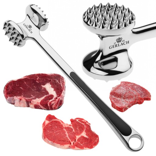 Dwustronna powierzchnia tłuczka pozwala dostosować rozmiar ząbków do przygotowywanych produktów zgodnie z potrzebami i nadaje mu uniwersalny charakter. Jedna strona, z grubszymi ząbkami, będzie idealna do przygotowania kurczaka i innych delikatniejszych mięs. Druga zaś doskonale sprawdzi się np. do schabu czy wołowiny. Tłuczek przyda się również do przygotowania wegetariańskich dań, np. do obróbki tofu lub cieciorki.