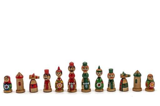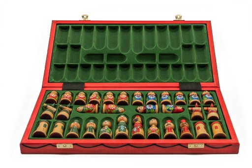 Szachy Babuszka charakteryzują się unikalnością malowania figur. Każda figura z kompletu jest maleńkim dziełem sztuki. Figury są ręcznie malowane i różnią się od siebie niewielkimi szczegółami.