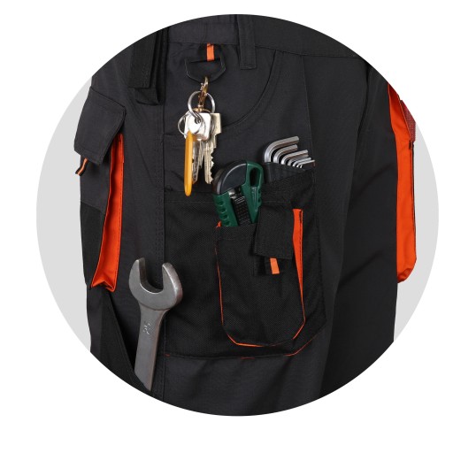Spodnie robocze do pasa Art.-Mas to bez wątpienia idealne rozwiązanie dla tych którzy szukają wysokiej jakości wykonania oraz trwałości w rozsądnej cenie. Nasze spodnie wykonane zostały z materiału która zapewnia zachowanie rozmiaru, koloru. Dzięki użytemu materiałowi spodnie nie gniotą się i zachowują elegancki i estetyczny wygląd.