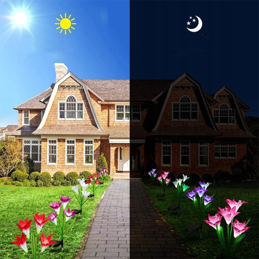 Polikrzemowy panel słoneczny o wysokiej konwersji, silne magazynowanie energii, szybkie ładowanie. Bateria o dużej pojemności, długotrwała żywotność baterii bez prądu, cykliczne ładowanie, trwała, bezpieczna i przyjazna dla środowiska. Wysokiej jakości panele słoneczne z polikrystalicznego krzemu, szybkie ładowanie, trwałe i mogące służyć przez długi czas. Kolor jest zróżnicowany, symulowany kwiat lilii, efekt wodoodporny jest dobry, efekt nocny jest oczywisty. Nadaje się do wielu miejsc, trawników, ogrodów itp.