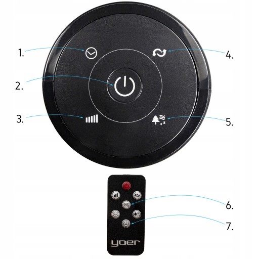 7️⃣ Włącznik / Wyłącznik wyświetlacza LED - wciśnij odpowiedni przycisk na pilocie i wyłącz wyświetlacz uruchomionego wentylatora, aby móc spokojnie spać w całkowitej ciemności.