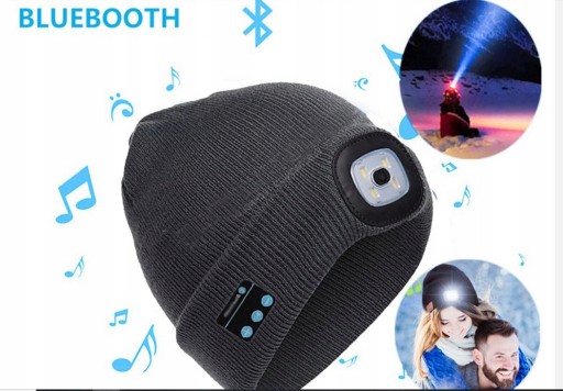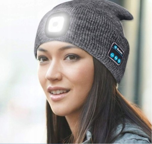 CIEPŁA CZAPKA ZIMOWA Z WBUDOWANYMI SŁUCHAWKAMI BLUETOOTH , MIKROFONEM ORAZ LAMPKĄ LED