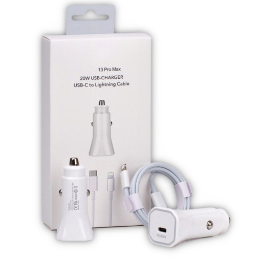 ZESTAW SAMOCHODOWY ADAPTER USB-C 20W KABEL USB-C DO LIGHTNING 1M