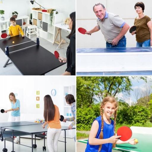 Chcesz zagrać w tenisa stołowego, ale nie masz odpowiedniego stołu? Ten zestaw do tenisa stołowego jest wyposażony w przenośną siatkę, dzięki czemu możesz grać w tenisa stołowego na dowolnym stole, zawsze i wszędzie! Niezależnie od tego, czy jest to stół obiadowy, czy w biurze, teraz możesz grać w tenisa stołowego w dowolnym miejscu.